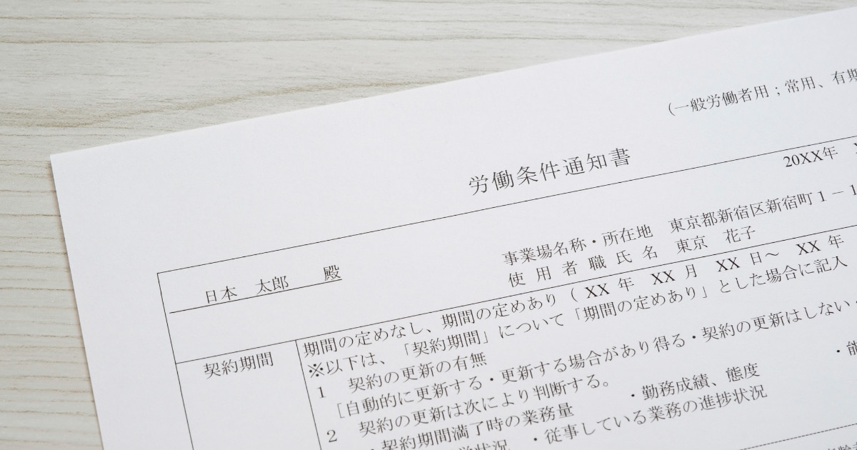 2024年4月1日から改正労働基準法施行規則が施行されています。ここでは、法改正に伴う労働条件通知書の主な変更点をお伝えします。