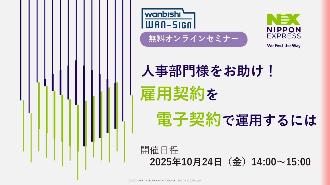 本セミナーでは、従業員様との雇用契約を、電子契約・契約管理サービス「WAN-Sign」を使って、電子契約として運用する方法について、ご紹介いたします。