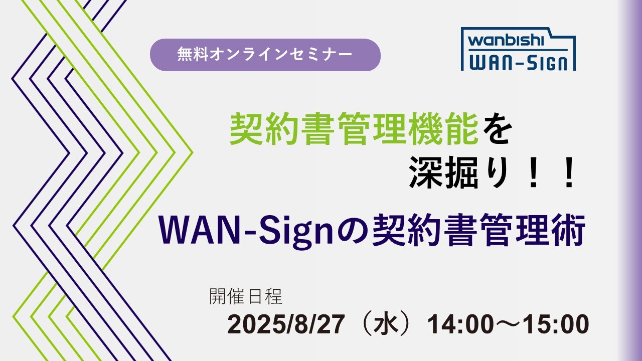 本セミナーでは、WAN-Signでの契約書管理をもっと便利に行っていただくために、WAN-Signの契約書管理機能を深掘りしてご案内いたします。