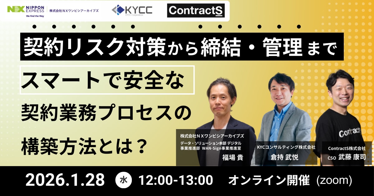 1月28日(水)「契約リスク対策から締結・管理まで、スマートで安全な契約業務プロセスの構築方法とは?」と題して共催ウェビナーを開催します。