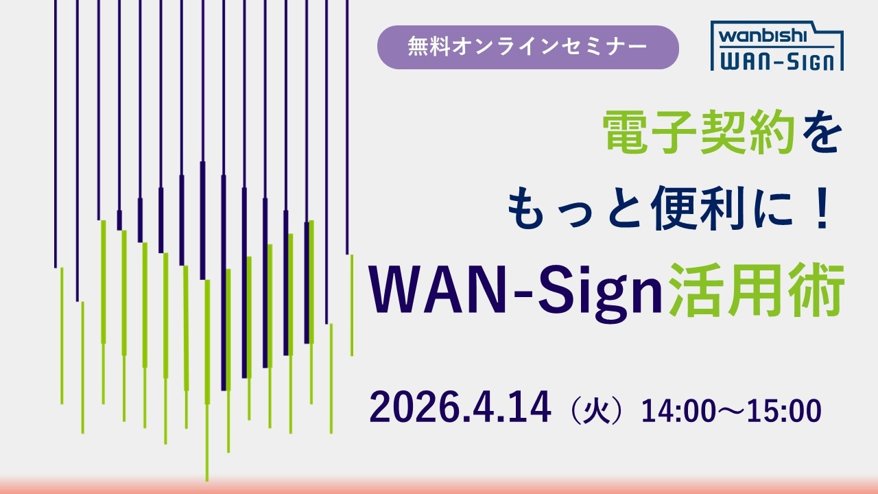 電子署名や電子契約をもっと便利にご利用いただくために、電子契約・契約管理サービス「WAN-Sign」の活用術をご紹介するセミナーを開催いたします。